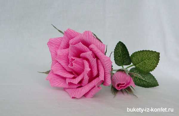 В этом мастер классе я покажу как сделать розу из гофрированной бумаги своими руками для букета из конфет. Именно такая роза используется почти во всех моих букетах и композициях из конфет. Вариантов, как сделать розу из гофрированной бумаги, очень много. В конце статьи я приведу видео урок — техника очень похожая, но роза получается совсем другая.