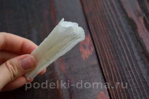 - Растяните двумя руками каждый лепесток у самого основания. Обрежьте лишние хвостики и приделайте ножку.