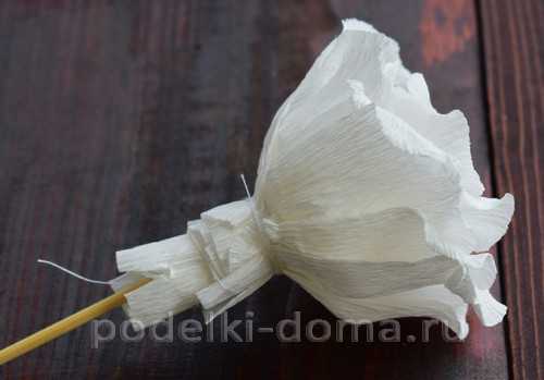 - Закройте проволоку на лепестках полоской гофрированной бумаги, затем прикрутите к стеблю.