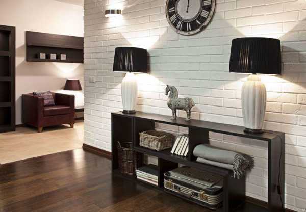 Кирпичная стена в интерьере прихожей / коридора