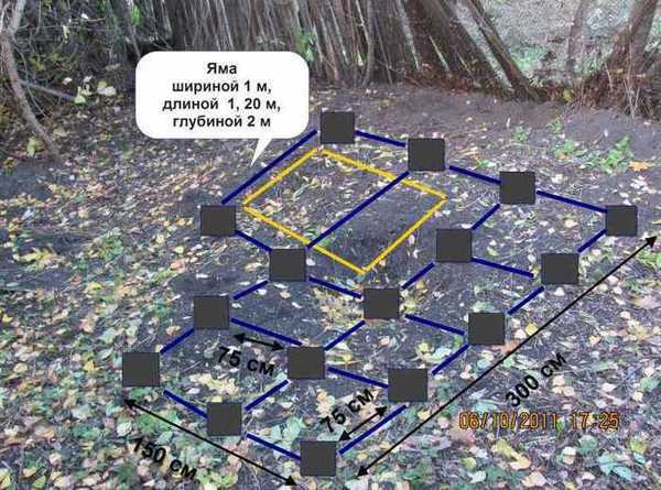 - В соответствии с предварительно выполненный разметкой выкопайте приямки глубиной до 0,8 м квадратной формы со стороной 0,2 метра.