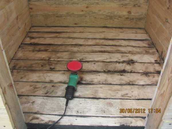 Сначала шлифуем наждачной бумагой с крупным зерном, потом с мелким. Состояние досок должно быть такое, чтобы не было никаких заноз с заусенцами. Работы по шлифованию нужно проводить в защитных очках и респираторе.