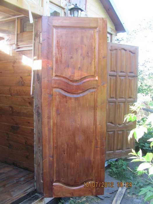 Чтобы дерево было надёжно защищено от сырости, обработаем его влагозащитным составом. После покроем помещение дачного душа яхтным лаком в 2 слоя с промежуточной сушкой. Навесим деревянную дверь