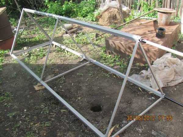 Если бы крыша была плоская, бочку можно было бы поставить на неё. Но так как крыша у нас двускатная, то для бочки нужно сделать подставку. При помощи электросварки сварим подставку-треногу.