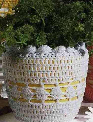 Красивые кашпо для цветов крючком со схемами