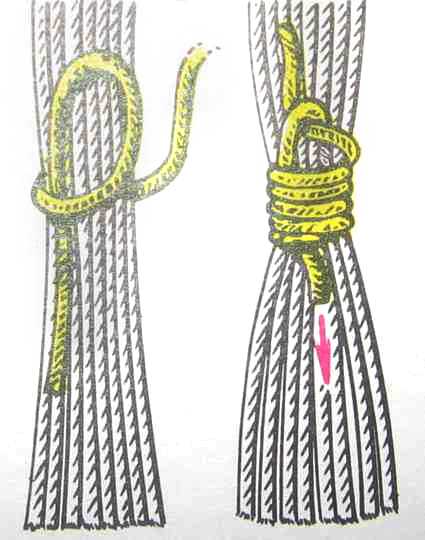Одной нитью из пучка сверху вниз делаем несколько витков.