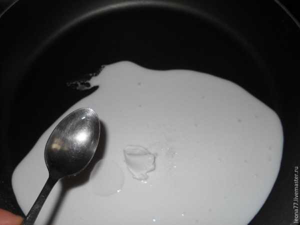 - Посуда с раствором ставится на самый слабый огонь и состав помешивается. Готовность определяется по прилипшей к ложке массе.