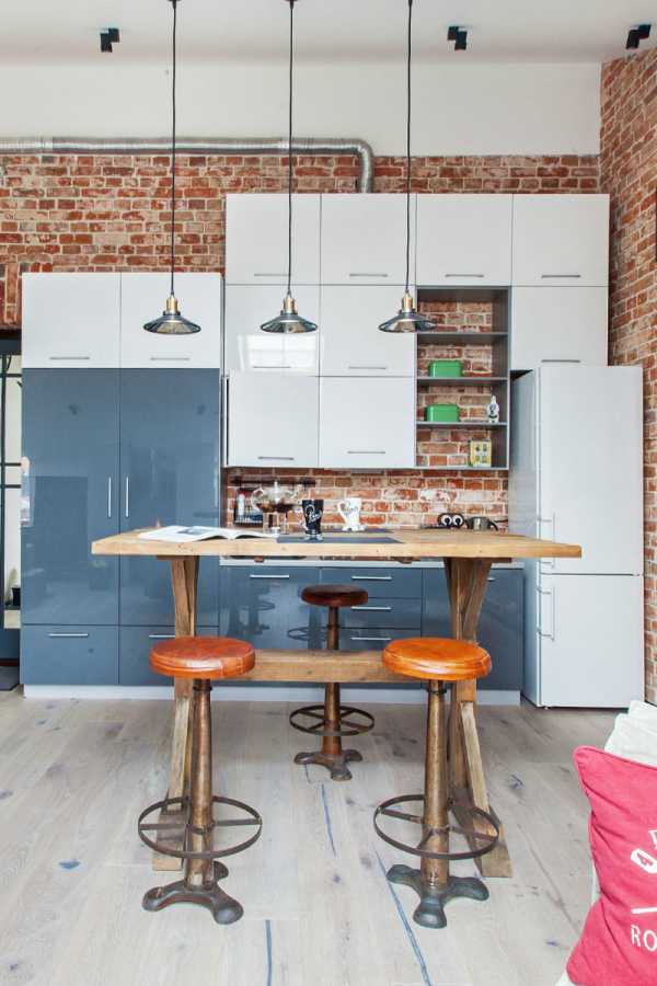 - Обустройство кухни студии с барной стойкой для разграничения рабочей зоны и зоны отдыха.